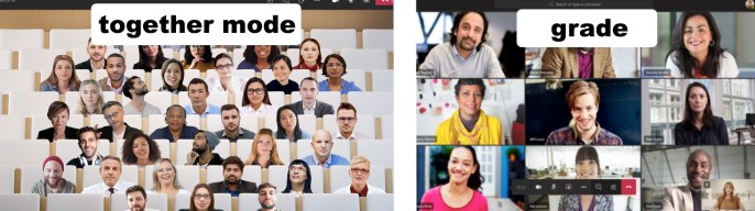 A Microsoft lançou uma ferramenta muito interessante. Ela coloca a audiência em um pano de fundo que pode ser um anfiteatro, sala de reuniões entre outros. Veja na foto abaixo.